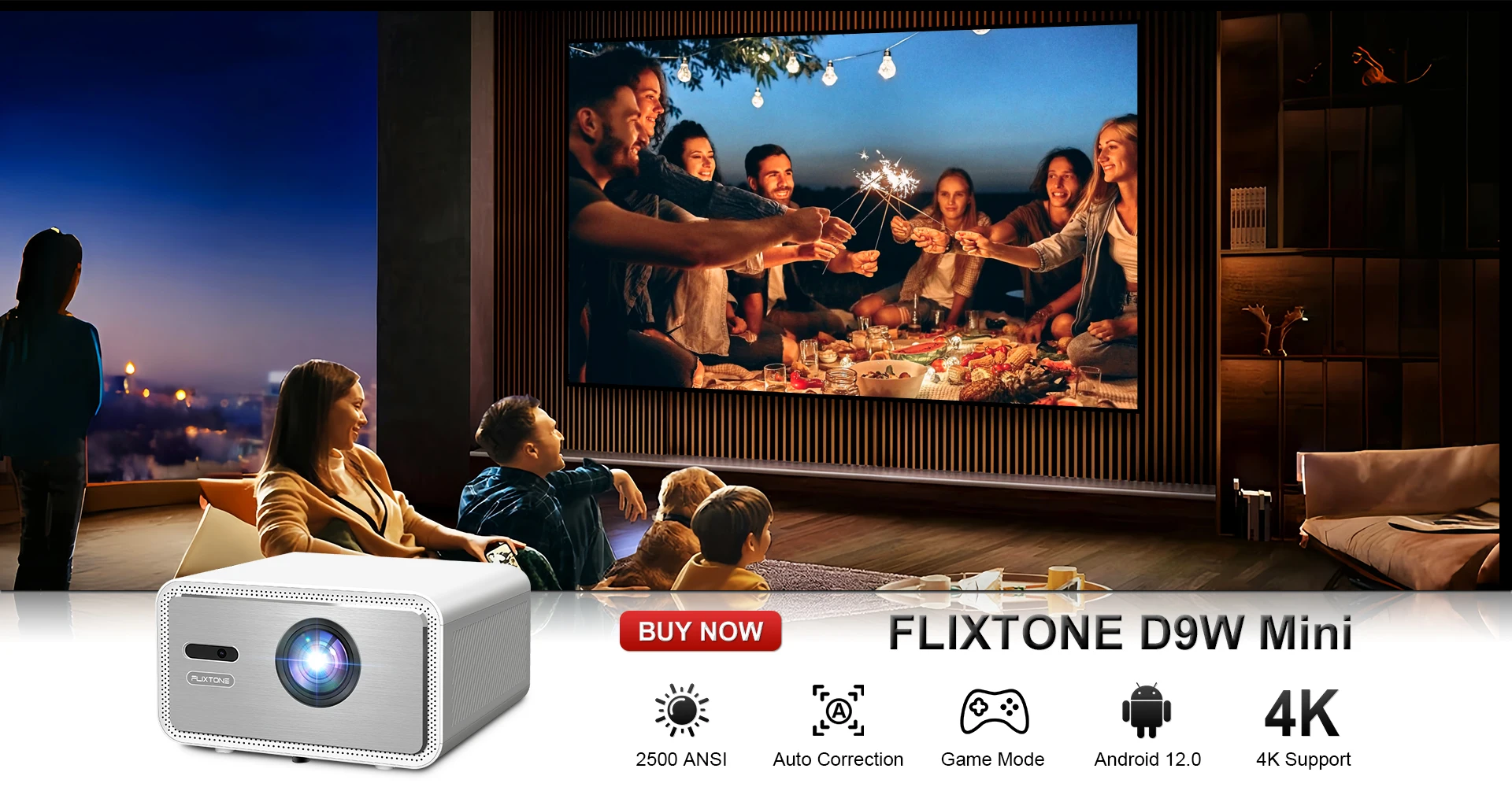 Flixtone D10S – портативный Full HD проектор, который меняет правила игры в домашнем кинотеатре и гейминга поддерживает 4К на воспроизведение.