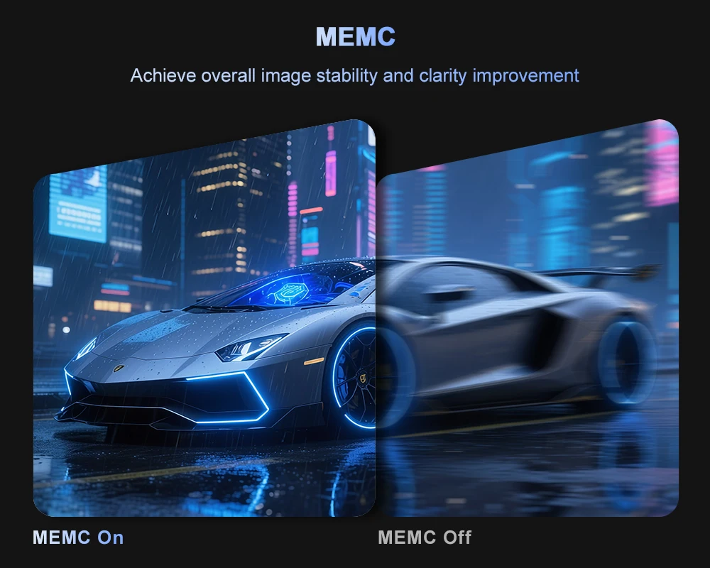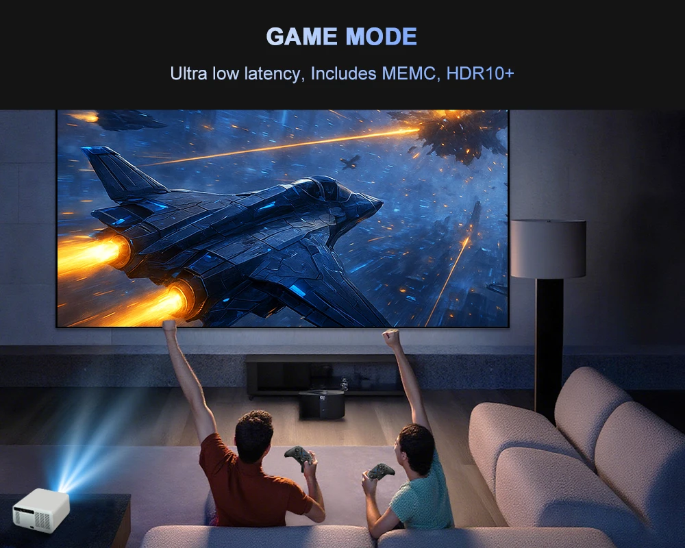 Сильные его стороны - реальная яркость 2200–2600 ANSI люмен достаточно для просмотра вечером без штор и в день. Android 12 работает стабильно, Netflix запускается без дополнительных танцев (в отличие от многих бюджетных моделей) MEMC действительно улучшает плавность в динамичных сценах и футболе очень тихий вентилятор по сравнению с конкурентами в этом ценовом диапазоне, приличное изображение за свои деньги после калибровки (рекомендую режим «Movie» или «User» + снижение яркости до 70–80%)