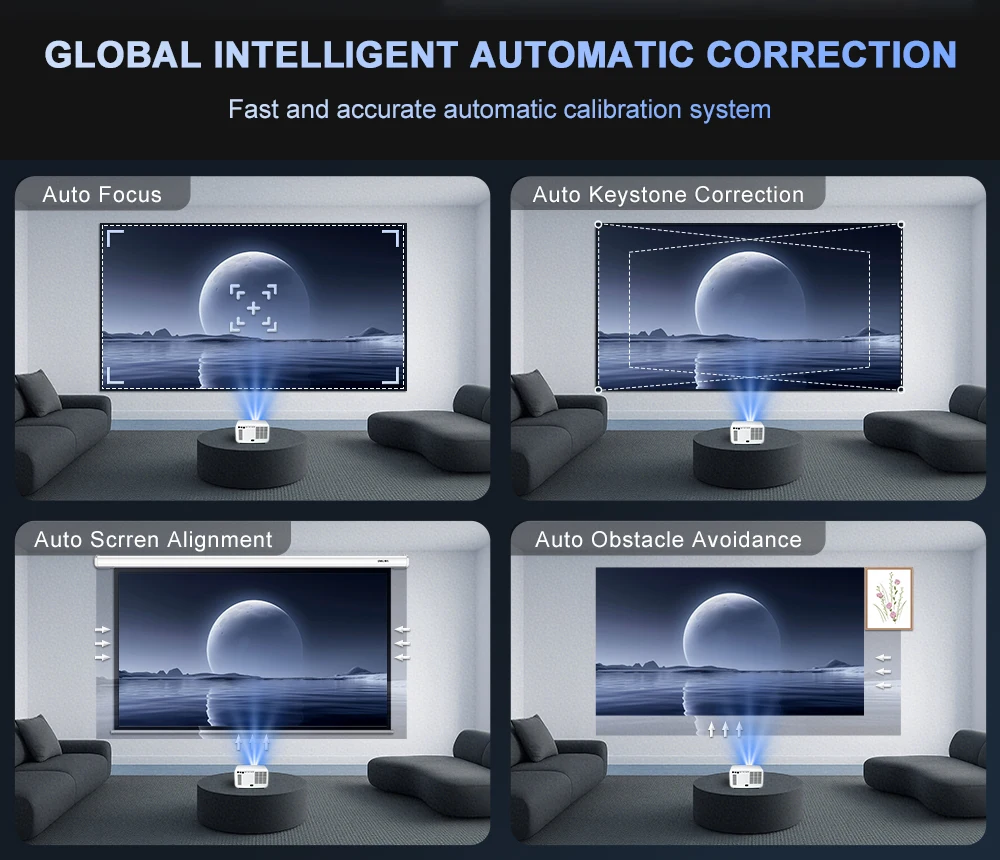 8. Fully Automatic Experience: One-click auto focus, keystone correction, obstacle avoidance and zoom