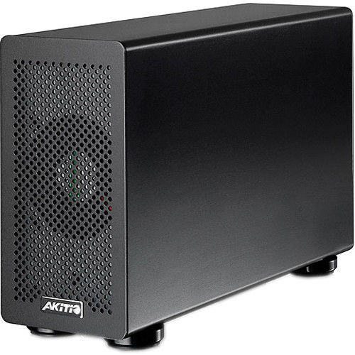 Akitio Box: виконана з високоякісного алюмінію, здатного захистити картку навіть від падіння. Має в собі два порти Thunderbolt2 (швидкість передачі до 20 Гб\сек), один порт PCIe (x16), 4-хполосный PCI Express 2.0 (швидкість передачі 5 Гб\сек), висувну задню панель для встановлення більш довгих карт, можливість підключення до шести пристроїв Thunderbolt2 і без необхідності використовувати будь-які інструменти для встановлення.