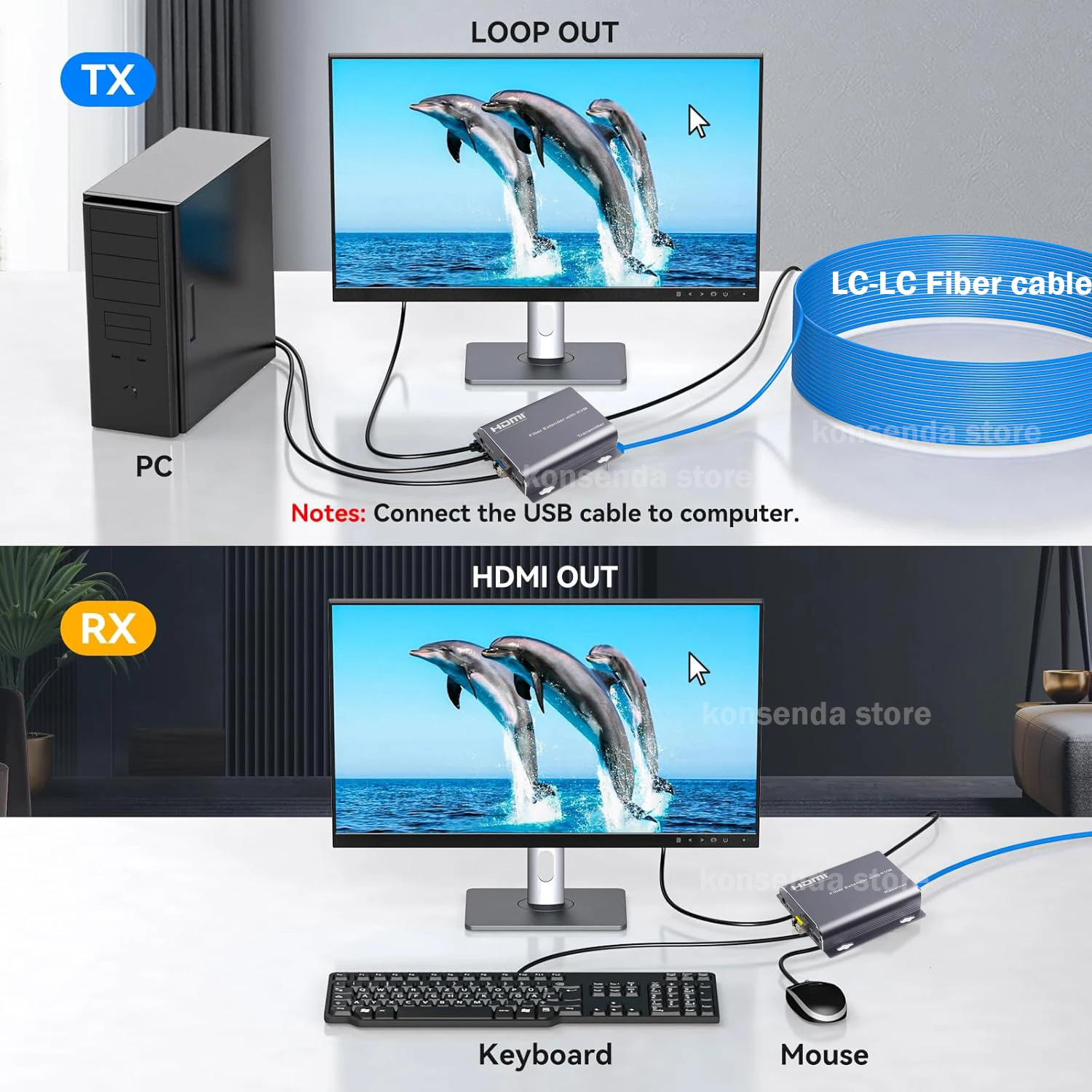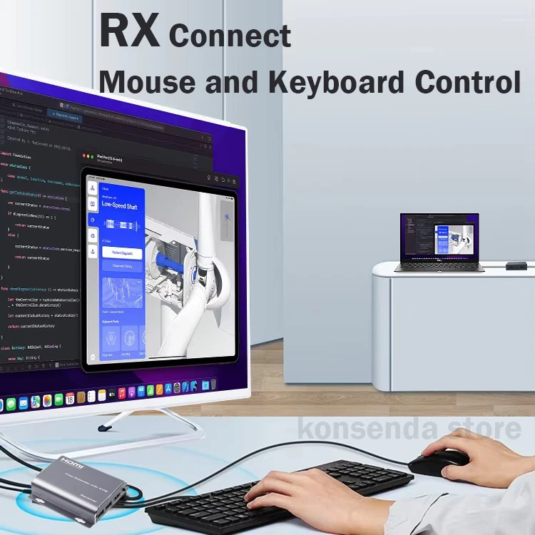 Важливою особливістю є повністю апаратна реалізація — пристрій не вимагає встановлення драйверів і працює за принципом «під'єднай та працюй».Функція KVM Подовжувач підтримує KVM-режим, що дає змогу керувати віддаленим комп'ютером. На боці приймача (RX) є USB-порт, до якого можна під'єднати: