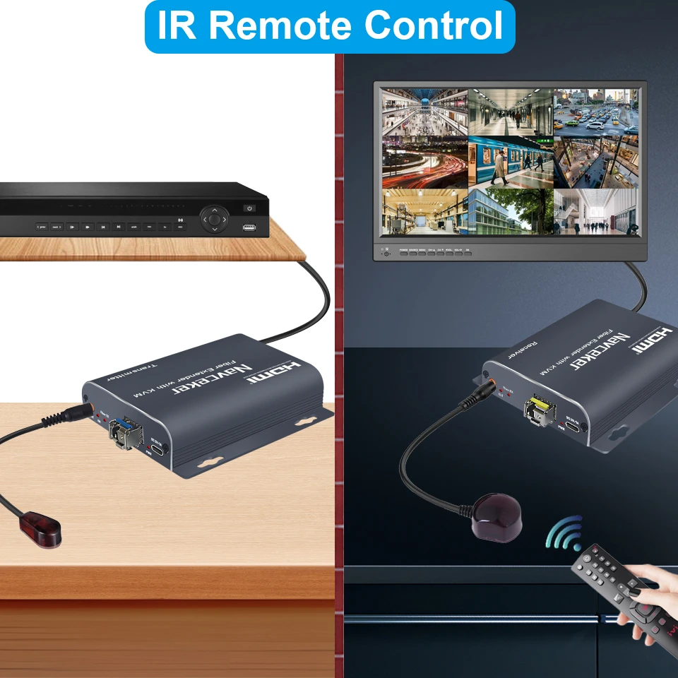 В умовах, коли потрібне передавання високоякісного HDMI-сигналу на чималі відстані за збереження можливості віддаленого керування, оптоволоконні подовжувачі стають одним із найефективніших рішень. Модель Navceker ZY-AD16-2 (також відома як Navceker 20 км HDMI Fiber KVM Extender) являє собою сучасний пристрій, що поєднує передавання відео, аудіо- та USB-сигналів по одному одномодовому оптичному волокну.Принцап роботи та архітектура Подовжувач побудований за класичною схемою з оптико-електрономі перетворенням. На боці передавача (TX) HDMI-сигнал і USB-дані (клавіатура та миша) перетворюються в оптичний потік із використанням технології WDM (Wavelenth Division Multiplexing). Передавання здійснюється на двох довжинах хвиль — 1310 нм і 1550 нм по одному волокну, що дає змогу уникнути потреби прокладання двох окремих оптичних ліній.