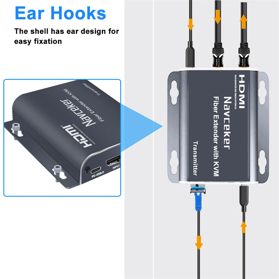 Оптоволоконний подовжувач Navceker H.265 20 км HDMI 1080P KVM кабель LC перетворювач відеопередавач керування віддалено USB